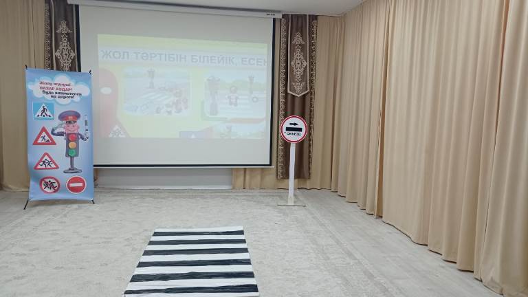 Мақсаты: Көшедегі қауіпсіздік ережелері туралы алған білімдерін пысықтау, балаларды өмірлік қауіпсіздік ережелеріне үйретуді жалғастыру. Танымдық белсенділігін, жол белгілерін білу мен олардың атқаратын қызметін, қоғамдық және көліктердегі тәртіп сақтау заңдылықтары туралы түсініктерін театр ертегісі арқылы ойлау қабілетін, ән, тақпақ арқылы тіл байлықтарын дамыту. Шығармашылық қабілеттерін арттыру. Жолда жүру ережелерін орындауға, дамытушы ойындар арқылы ұйымшылдыққа тәрбиелеу.