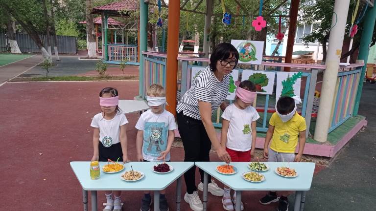 Мақсаты: Шығармашылық қиялын, зейінін, сөйлеуін дамыту. Балалардың бауырымен жорғалаушылар, өсімдіктер, құстар туралы білімдерін жалпылау, нақтылау. Балалардың дәмі бойынша жемістер мен көкөністер туралы түсініктерін кеңейту. Бір-біріне көмектесуге, достарымен бірге жұмыс жасауға дағдыларын шыңдау.