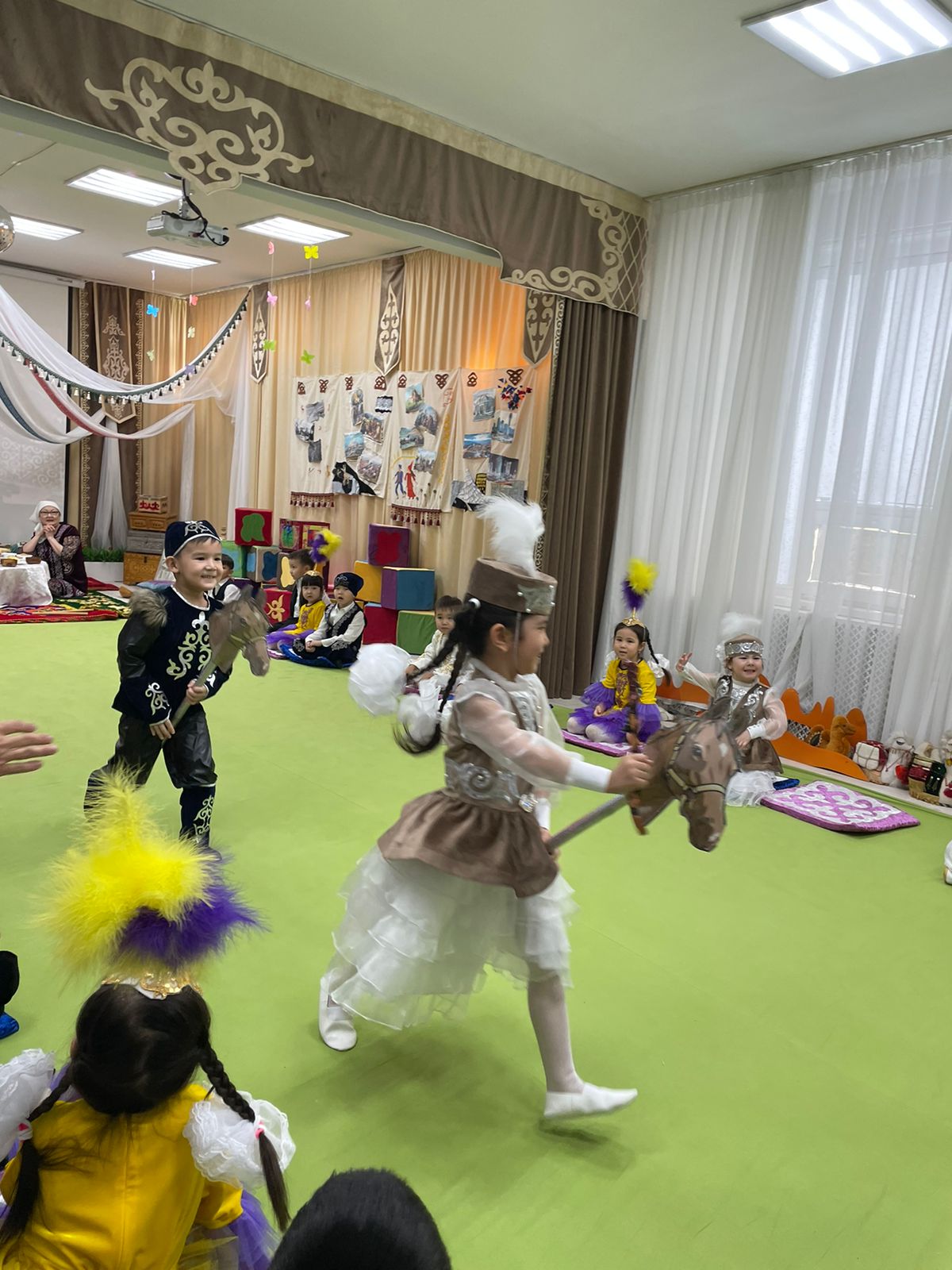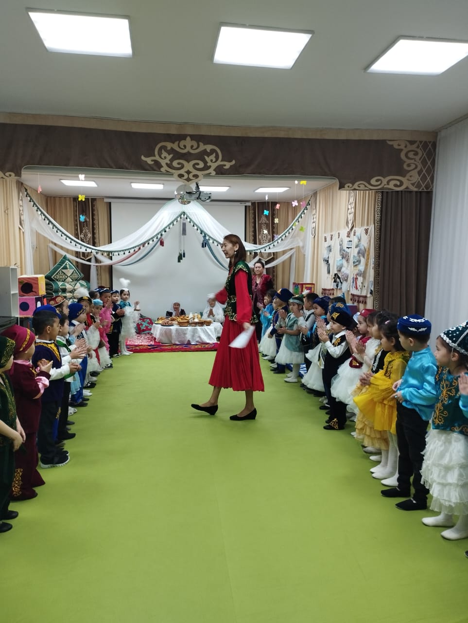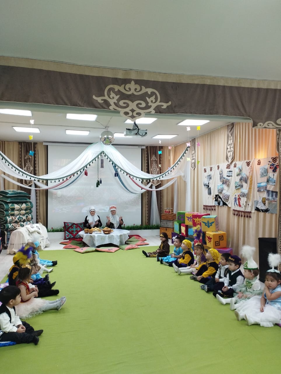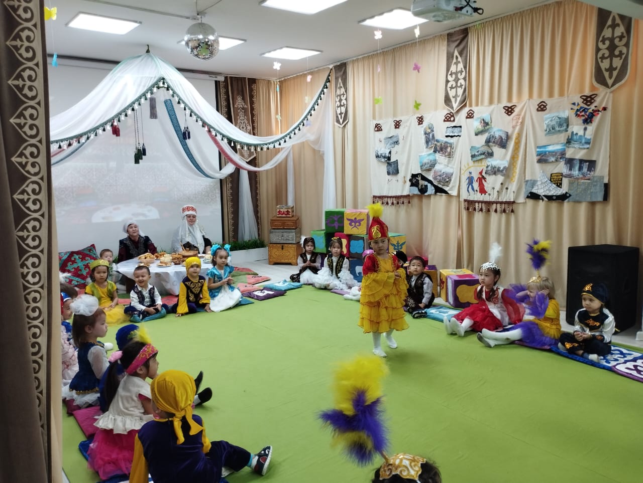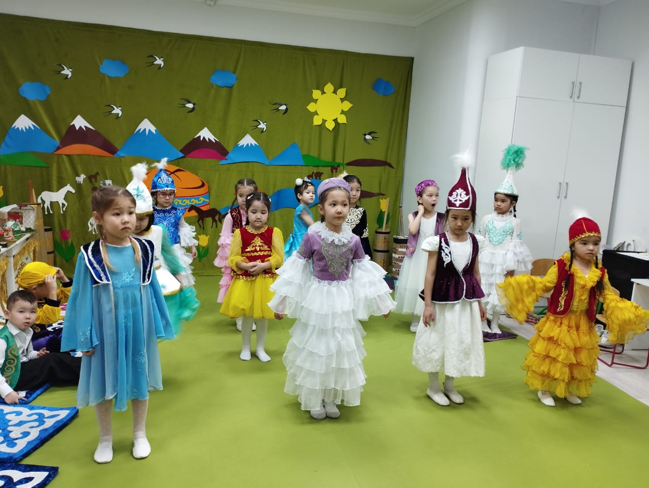2023 жылдың наурыз айына арналған айлық жоспарын сәйкес, балабақшада «Қош келдің, әз Наурыз!» атты іс-шаралар жоспары іске асырылды. Іс-шара барысында қауіпсіздік ережелерін сақтау жөніндегі нұсқаулықтар жүргізіліп, музыка залы мерекеге сай безендірілді. Мерекеде тәрбиеленушілермен «Оқтау тартыс», «Бестемше», «Ханталапай», «Арқан тарту» т.б ұлттық ойындар кеңінен ойнатылды. Балабақшада құрылған «Әжелер мектебінің» әжелері «Тұсау кесу», «Ат қою», «Қырқынан шығару», «Бесікке салу» т.б салт-дәстүрлерін насихаттады. Қазақтың атадан балаға мирас болып келе жатқан ұлттық бұйымдар мен қолөнер туындыларынан көрме қойылып, балалар танымын кеңейту мақсатында саяхат ұйымдастырылды.